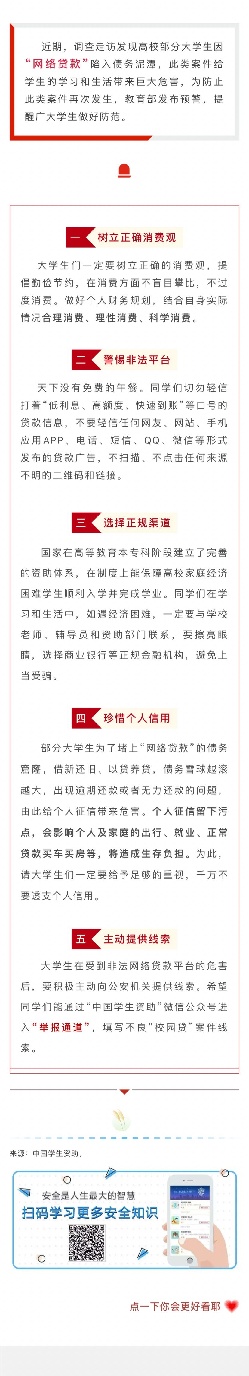 教育部提醒广老员工警惕不良“网络贷款”